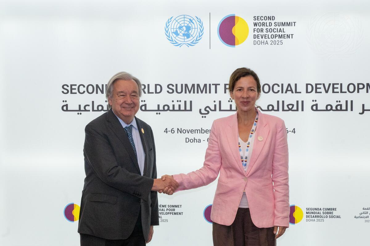 The Secretary-General is in Doha to attend the Second World Summit for Social Development. Building on the 10 Commitments of the landmark 1995 World Summit for Social Development in Copenhagen and the Copenhagen Declaration, the Second World Summit aims to accelerate action on poverty eradication, the promotion of full employment and decent work, and social inclusion, ensuring that no one is left behind in an increasingly complex and interconnected world. It further aims to address persistent gaps, reaffirm global commitment to social development, and give new momentum to the implementation of the 2030 Agenda for Sustainable Development.