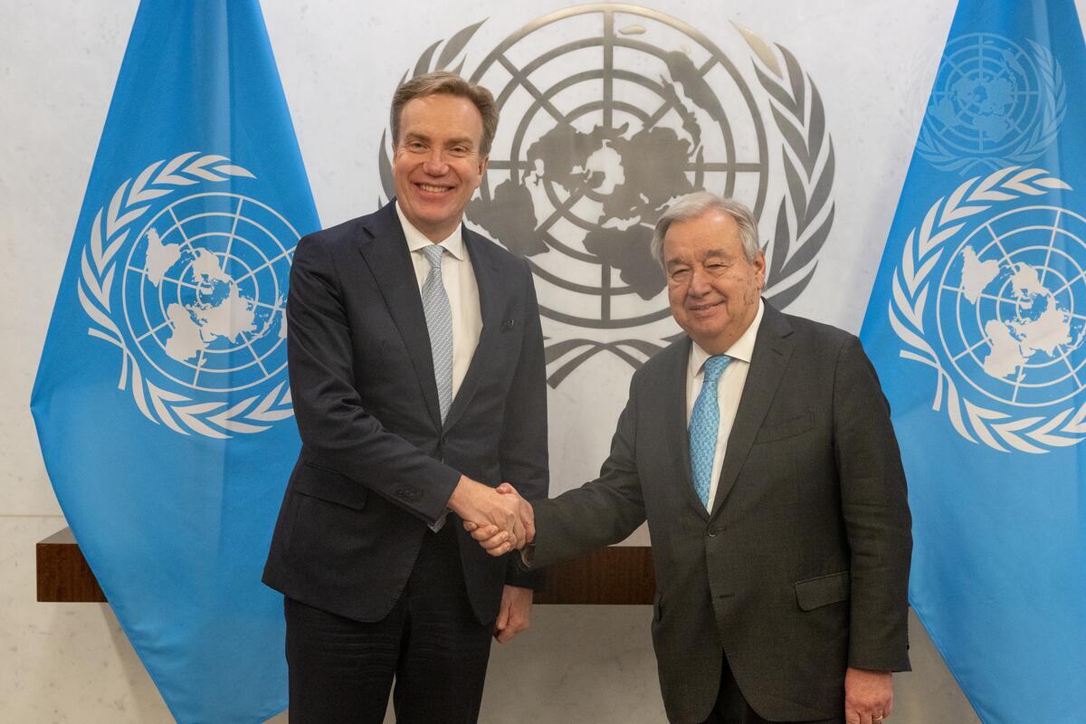 Secretary-General António Guterres (right) meets with Børge Brende, President and Chief Executive Officer of the World Economic Forum.