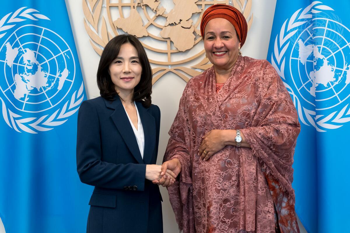 Deputy Secretary-General Amina Mohammed (right) meets with Jina Kim, Second Vice Foreign Minister of the Republic of Korea.